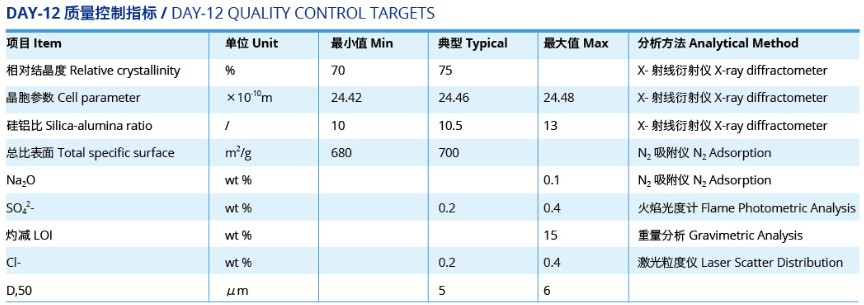 DAY-12低鈉超穩高硅Y分子篩,Na2O≤0.1%, SiO2/Al2O3摩爾比≥10。